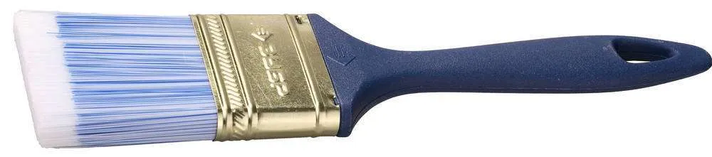 Искусственная щетина обеспечит оптимальное нанесение воднодисперсионных и акриловых ЛКМ, щетина кисти надежно закреплена стальным бандажом, а наличие легкой пластмассовой рукоятки обеспечит комфортную работу