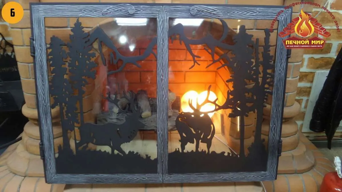 - В том же дизайне можем сделать панно, колосник, каминный набор и другие предметы.